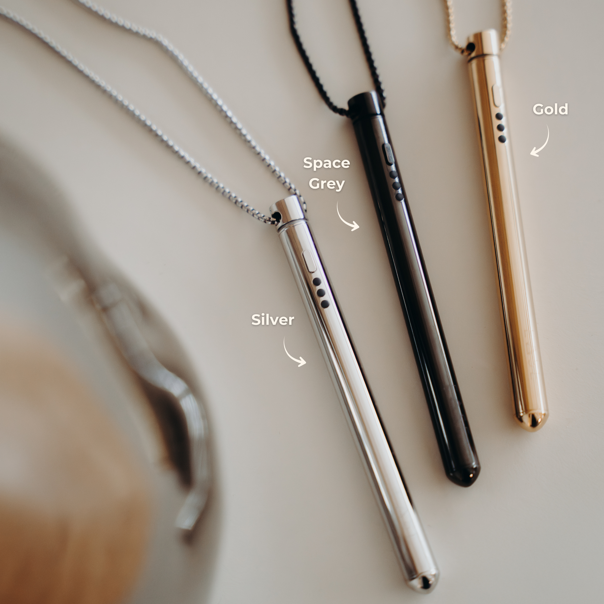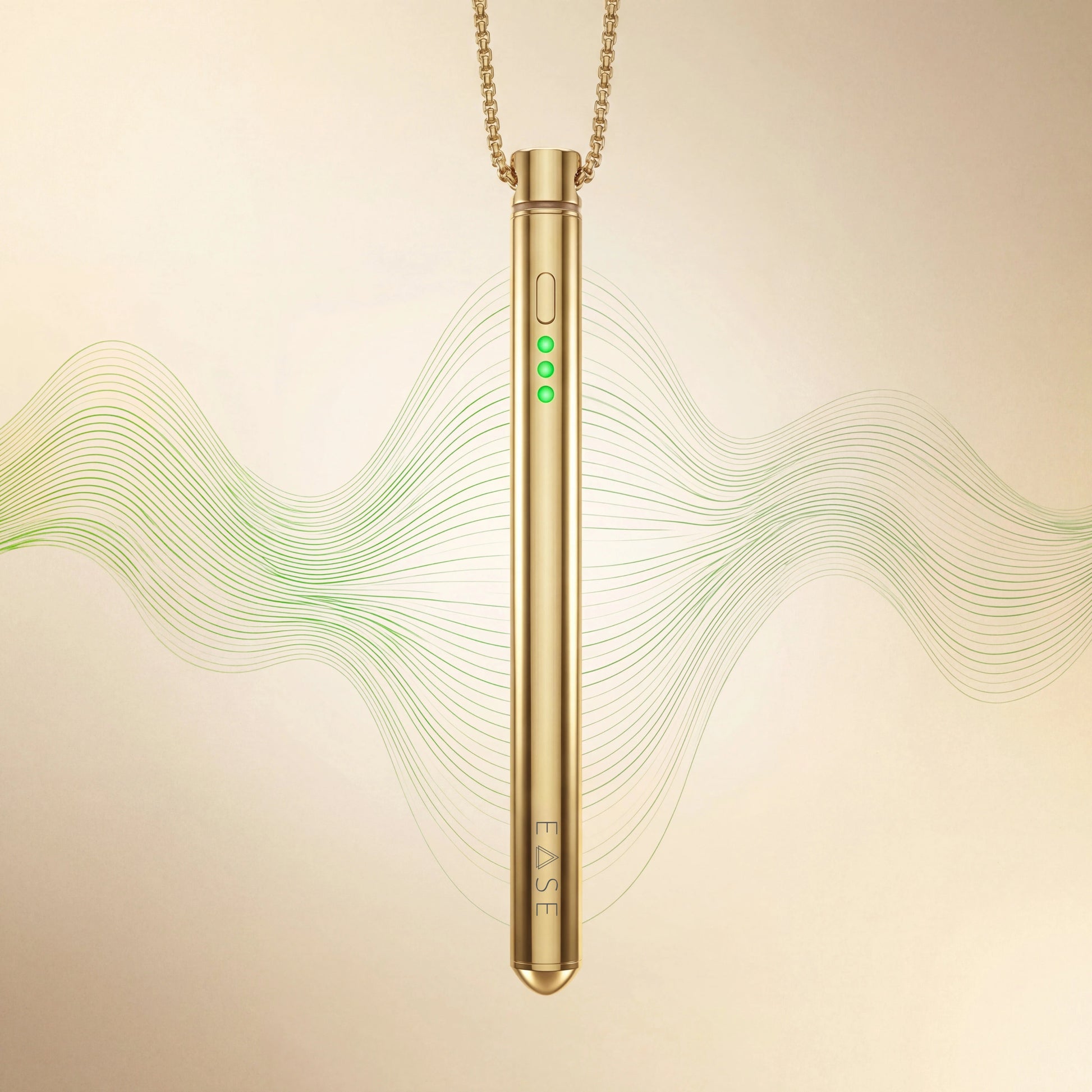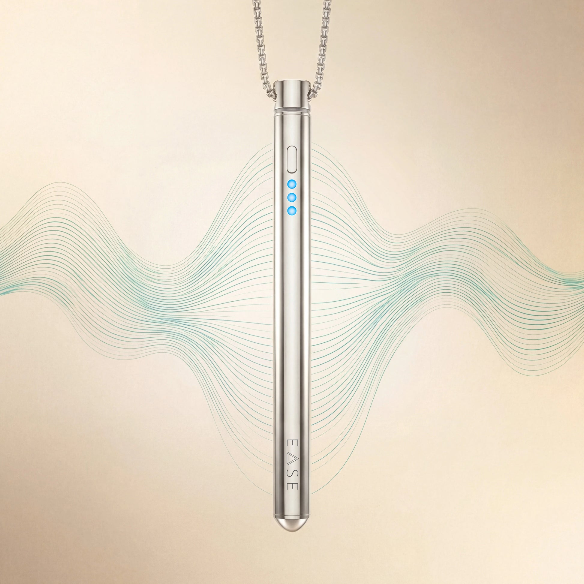 Die EASE-Akupressurkette vereint Ästhetik und Funktion, sodass sie diskret als Schmuckstück getragen werden kann und jederzeit zur Hand ist.