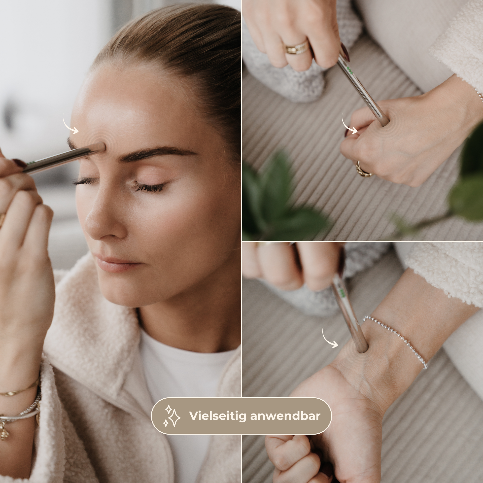 Anders als Akupunktur-Nadeln: Keine Pieks. Nur sanfte, flächige Stimulation – wie eine zarte Massage, die sich beruhigend anfühlen kann.